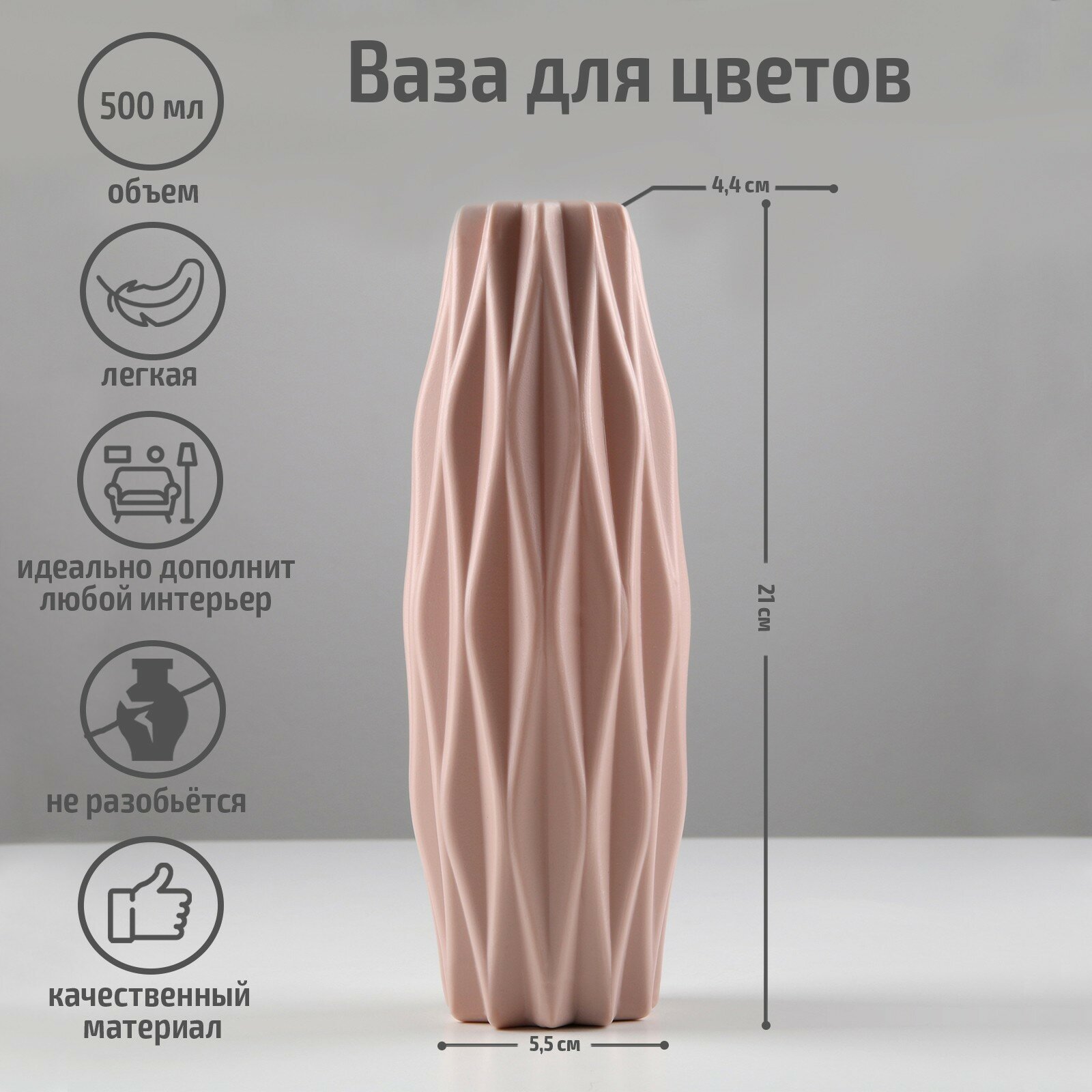Ваза для цветов пластик, 14×20,5 см, 1,4 л, розовая