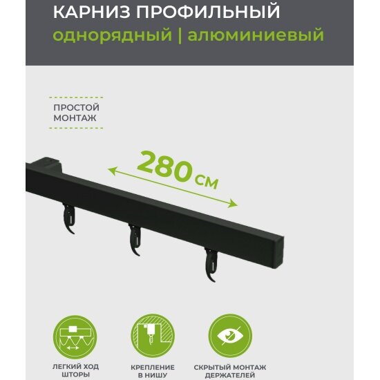 Карниз потолочный алюминиевый однорядный Facile 280 см черный