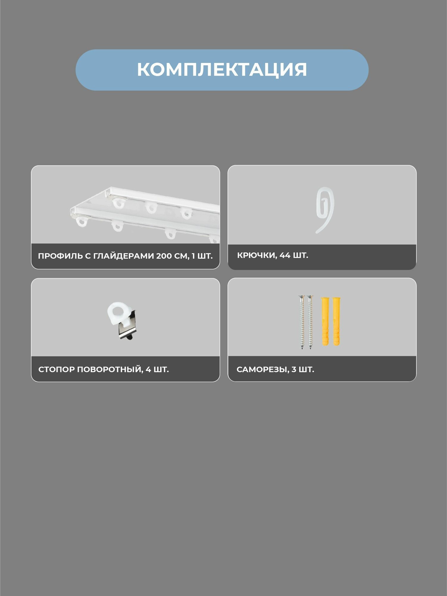Карниз для штор профильный, настенный, потолочный двухрядный металлический 200 см