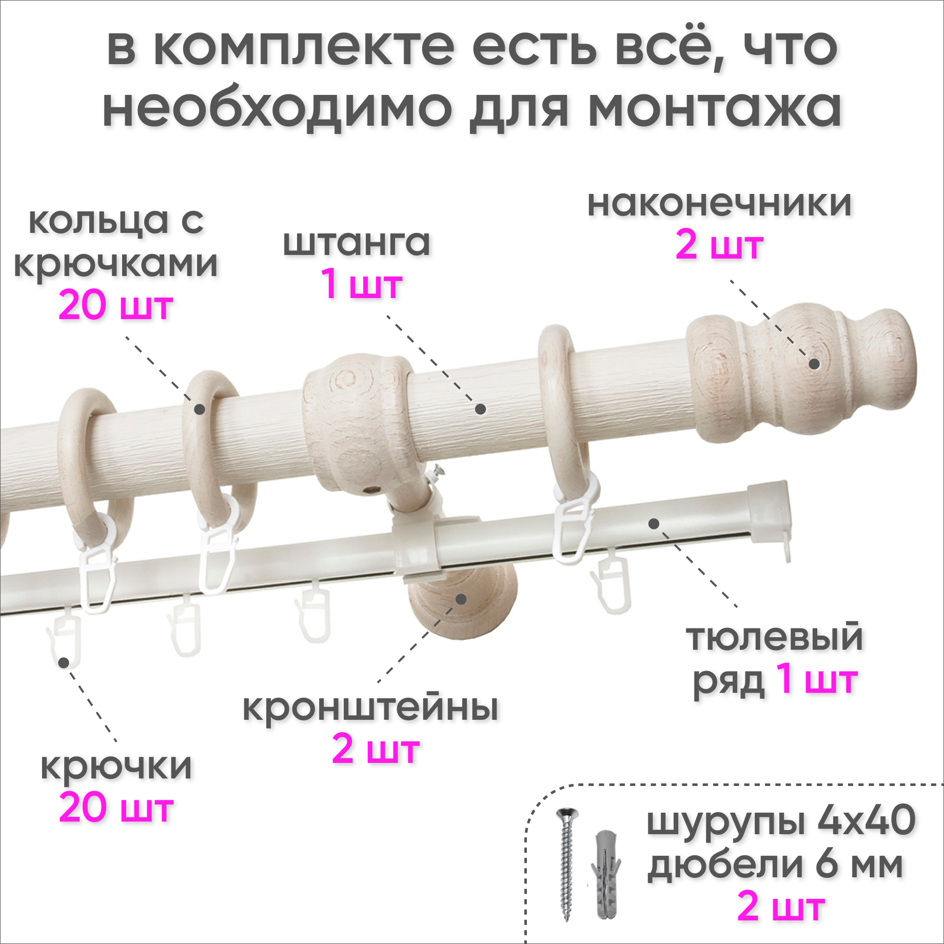 Карниз для штор круглый двухрядный из дерева Белый ясень 150 см