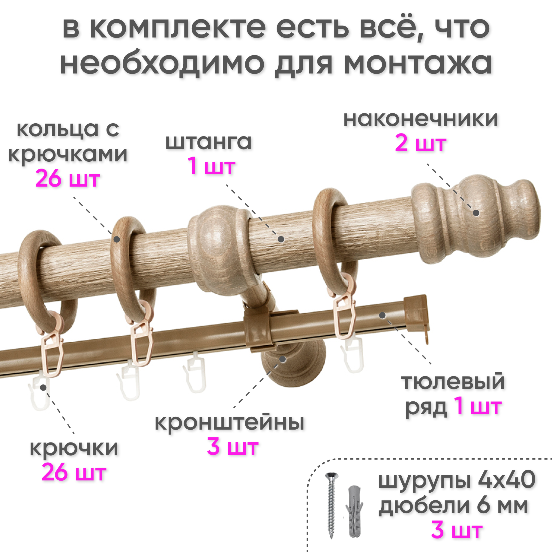 Карниз для штор круглый двухрядный из дерева составной Груша 300 см