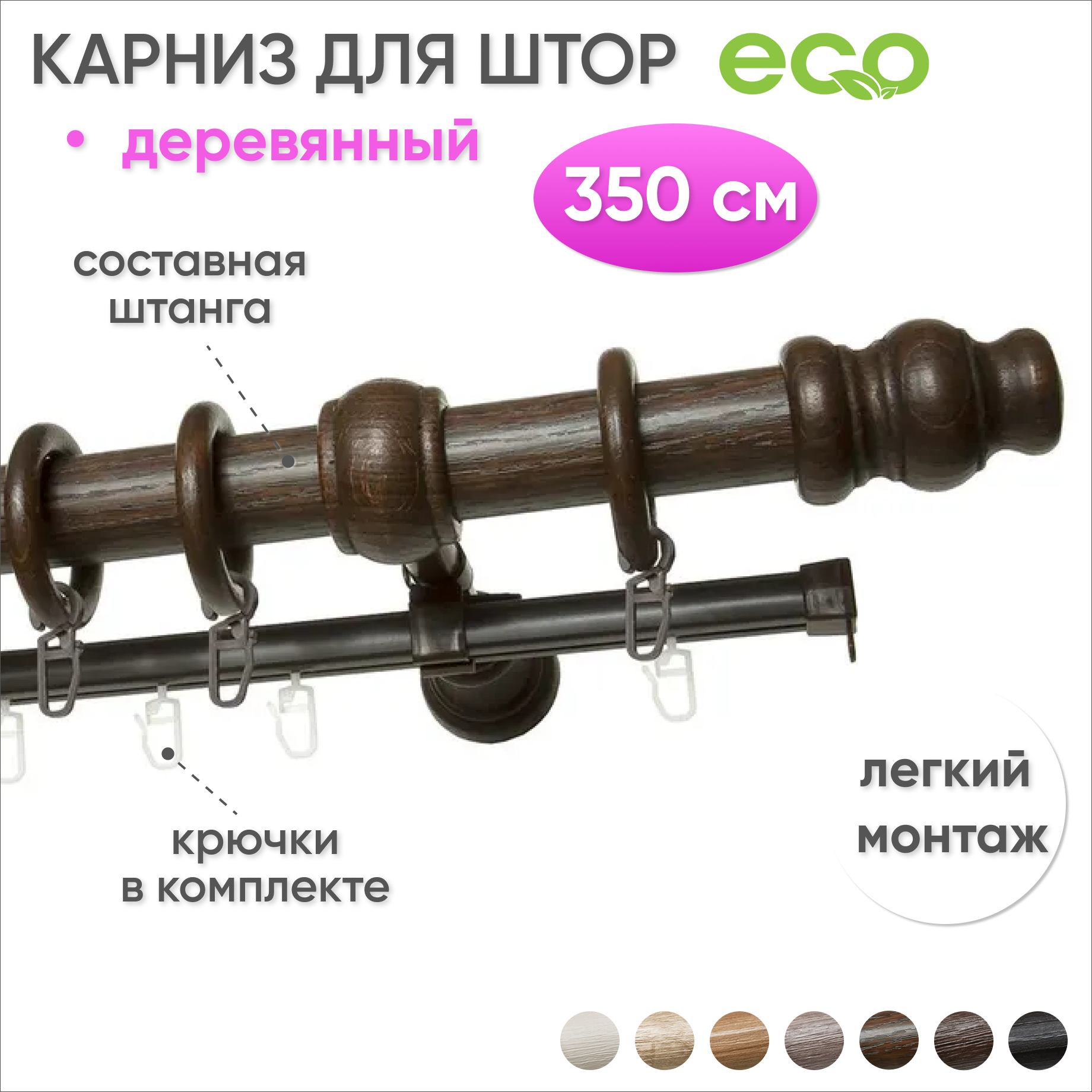Карниз для штор круглый двухрядный из дерева составной Венге 350 см