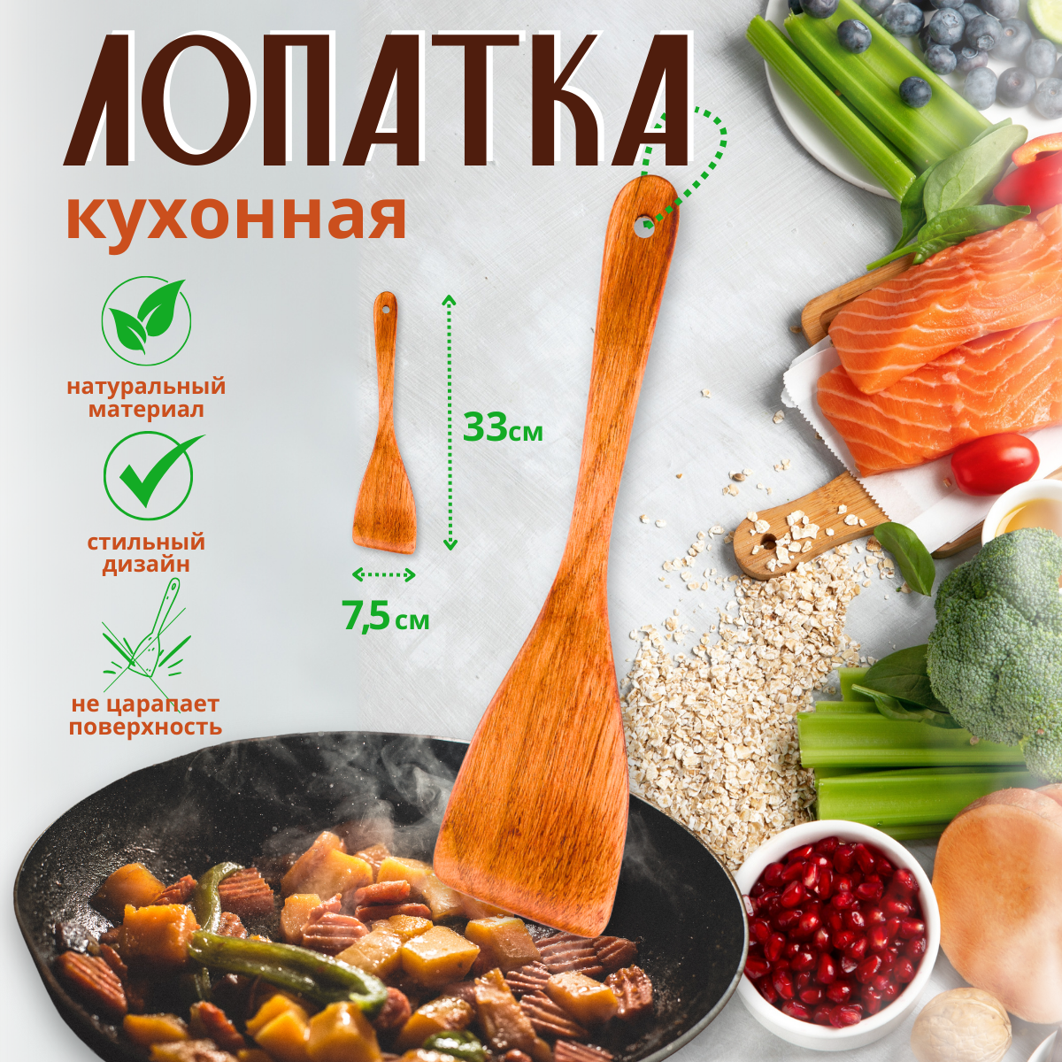 Лопатка деревянная / 32 х 7,5 см