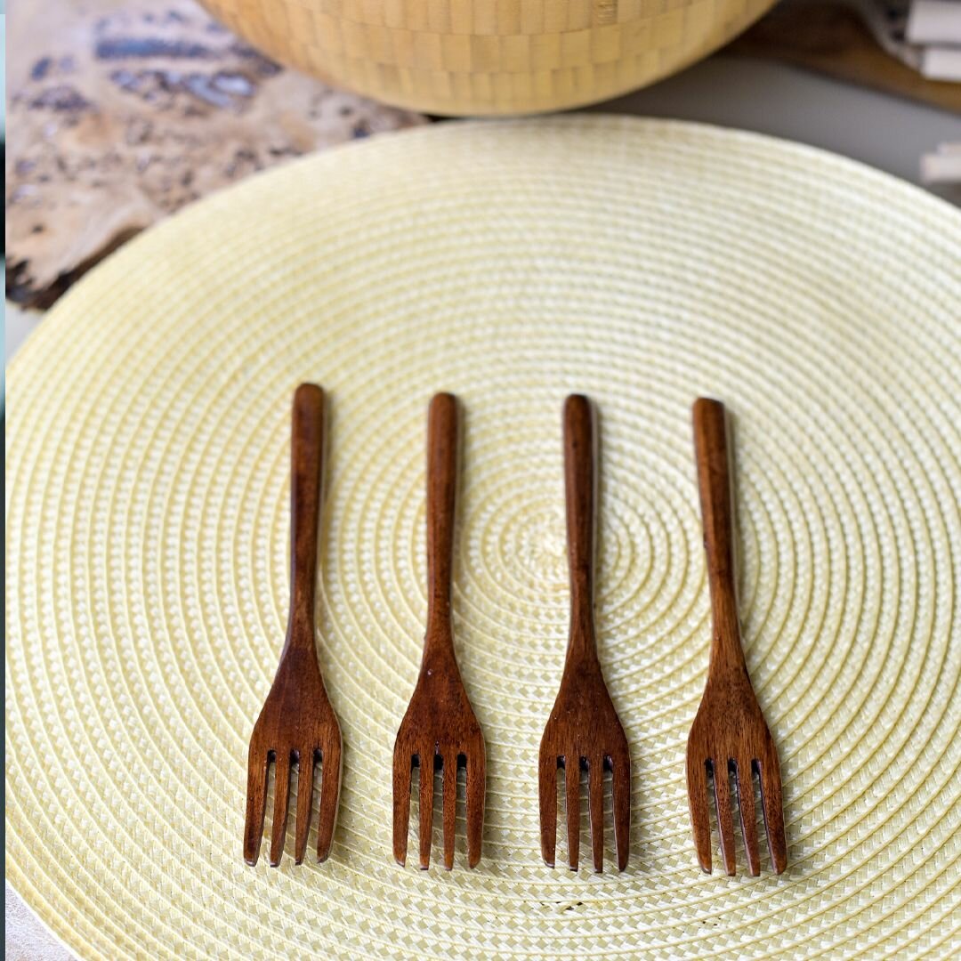 Набор столовых приборов - деревянные вилка, ложка столовая, ложка чайная