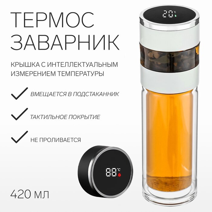 Термос — заварник, 420 мл, с термометром, белый интересное:
