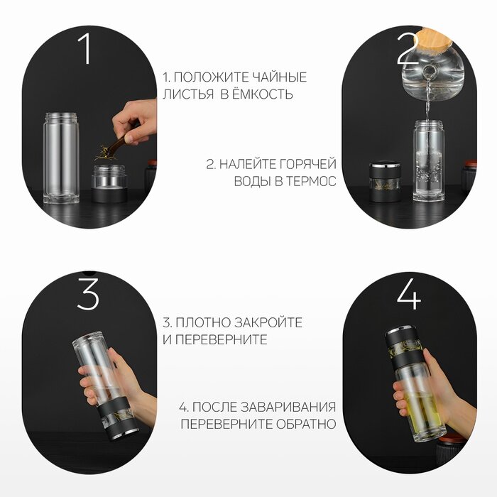 Термос-заварник, 420 мл, с термометром, черный 9933505