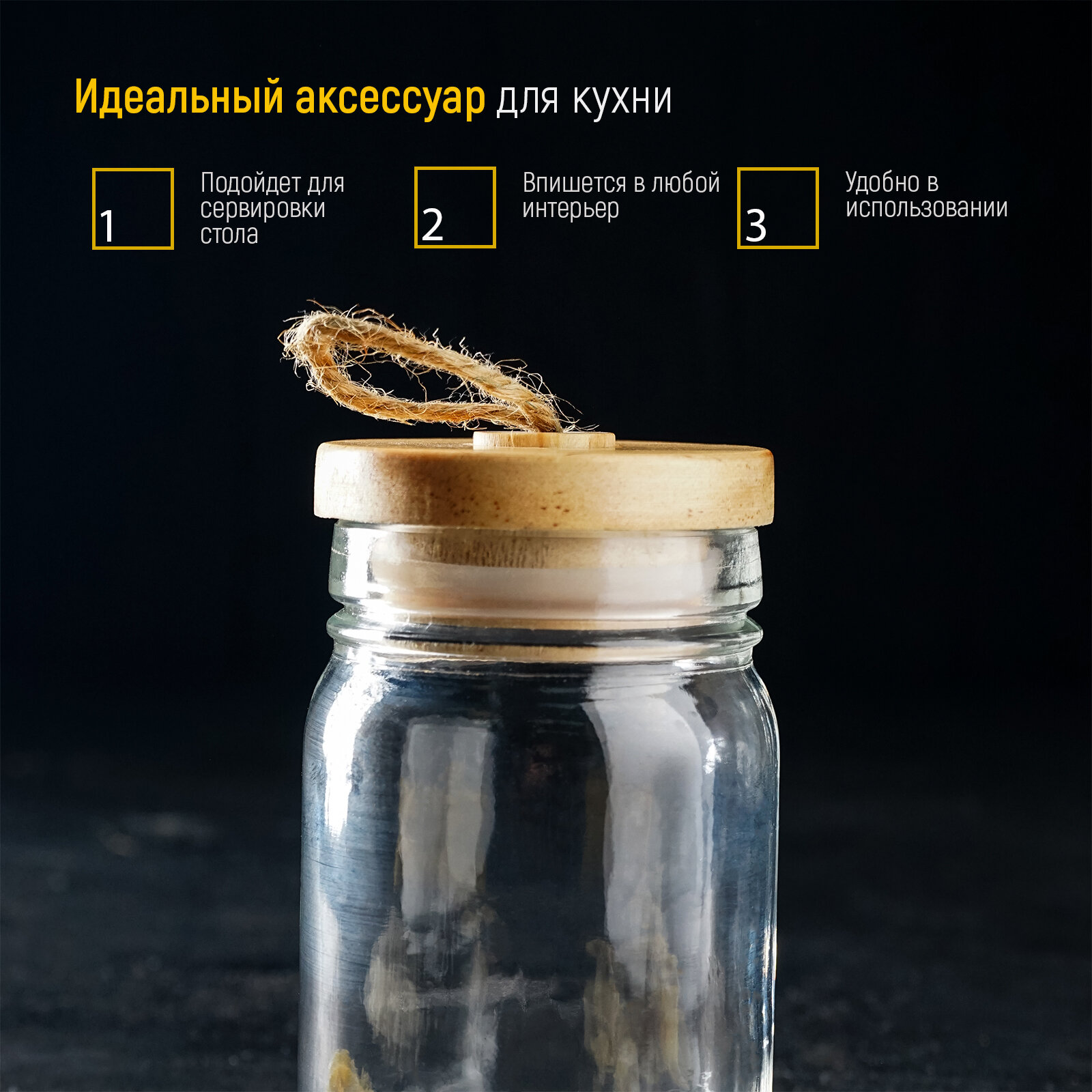 Банка стеклянная для сыпучих продуктов с бамбуковой крышкой «Эко» 250 мл интересное: