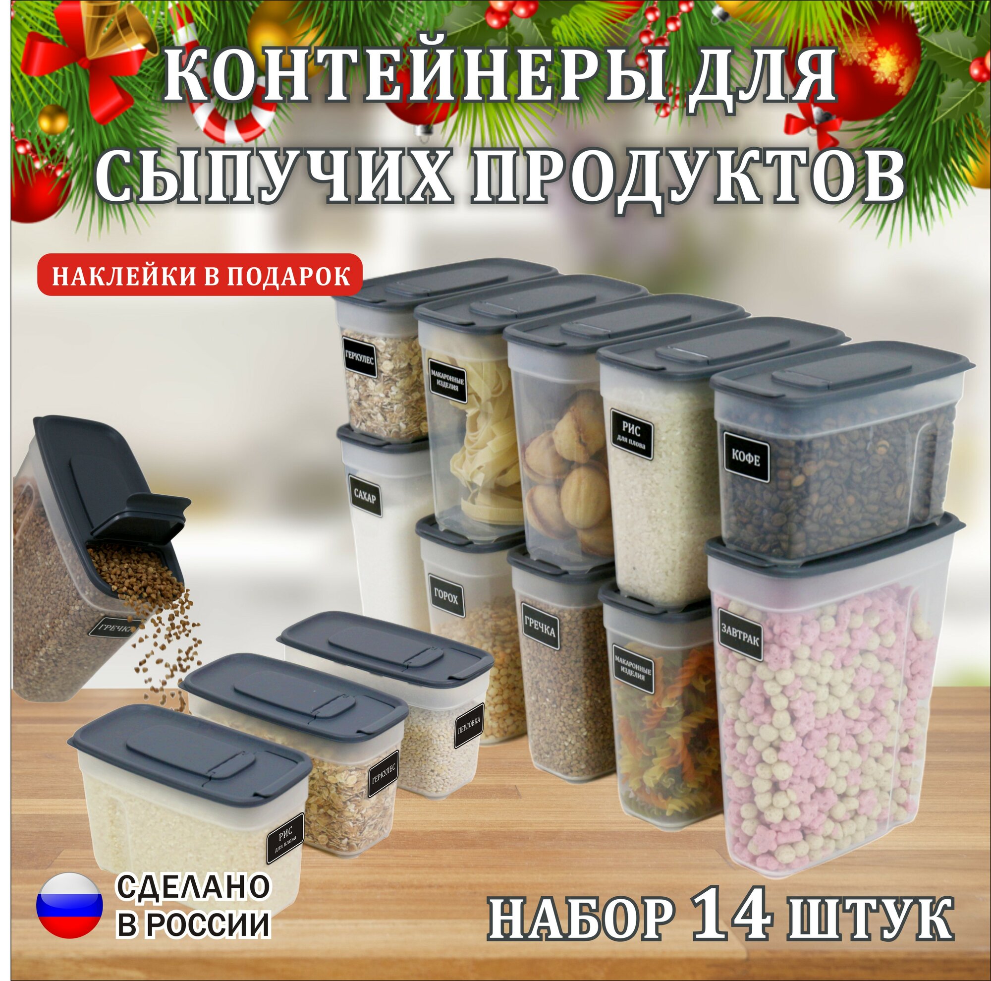 Банки для круп набор 14 штук цвет графит интересное: