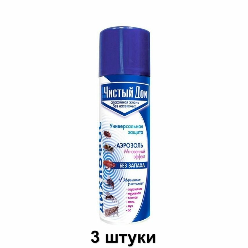 Купить Чистый дом /Дихлофос аэрозоль от летающих и ползающих насекомых , 150 мл, 3 шт