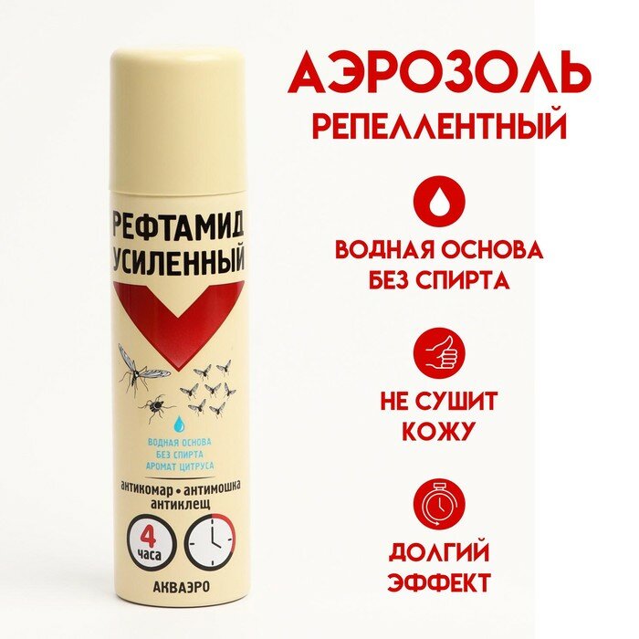 Аэрозоль репеллентный Рефтамид от комаров, мошек и клещей на водной основе, 150 мл