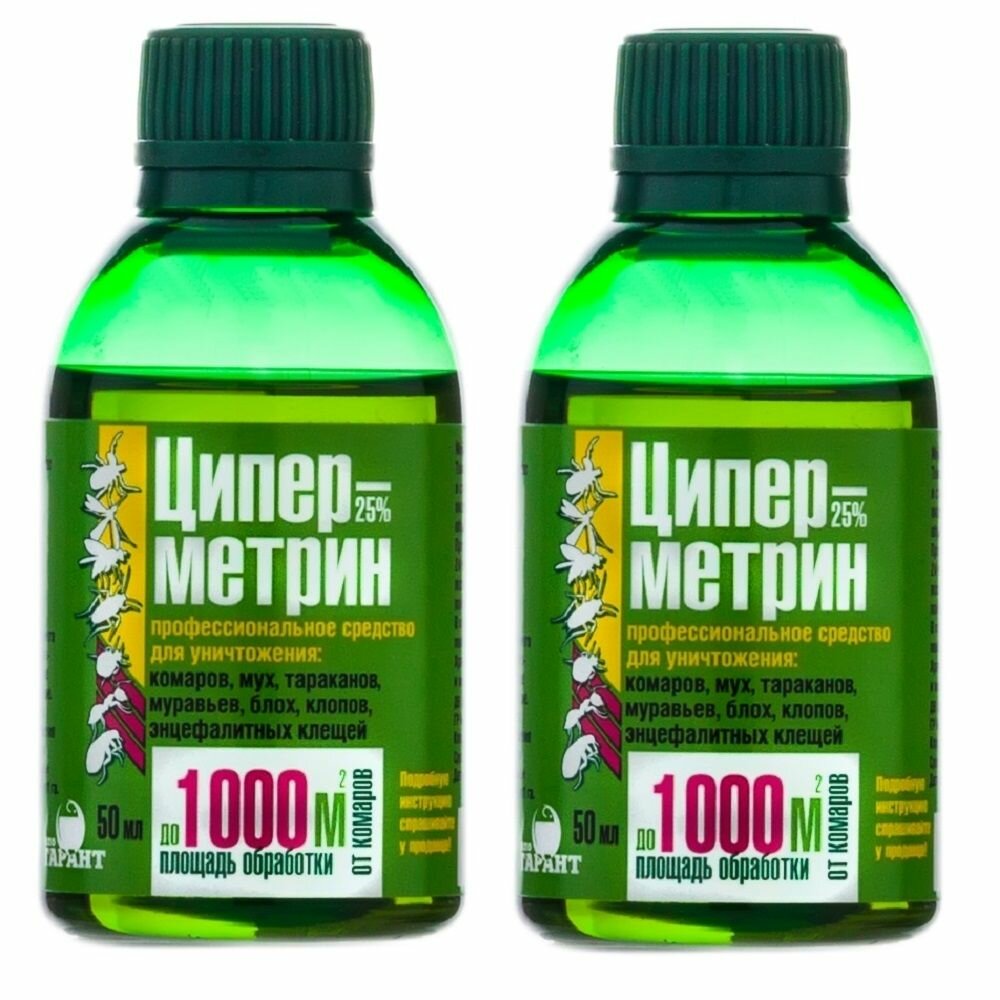 Купить Циперметрин 25 средство от клопов, тараканов, блох, муравьев, мух, комаров, иксодовых клещей, 50 мл 2 шт