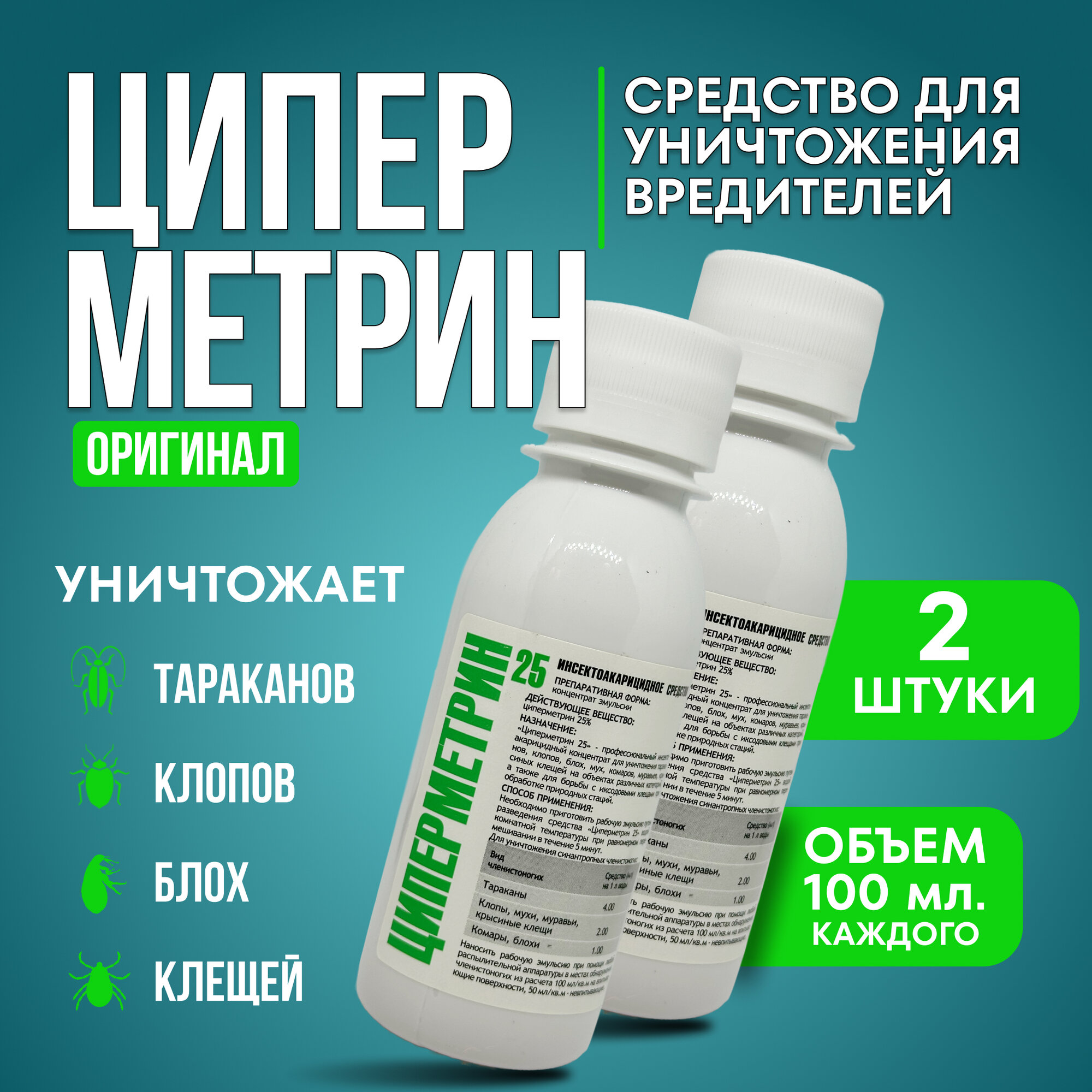 Купить Циперметрин 100 мл. 2 шт. оригинал / против тараканов, блох, клопов, клещей, муравьев, вшей