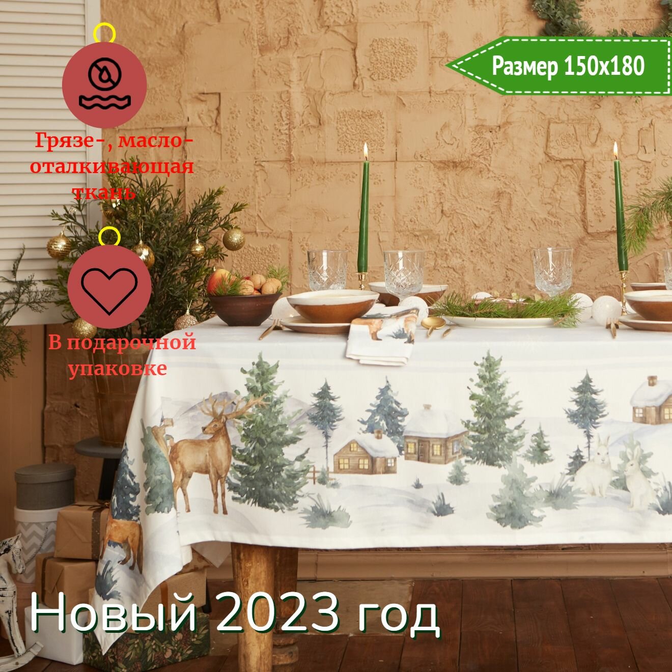 Купить Новый год.Скатерть новогодняя Этель "Forest animals" 150х180 +/-2см с гмво, 100%хл, саржа 190гр/м2