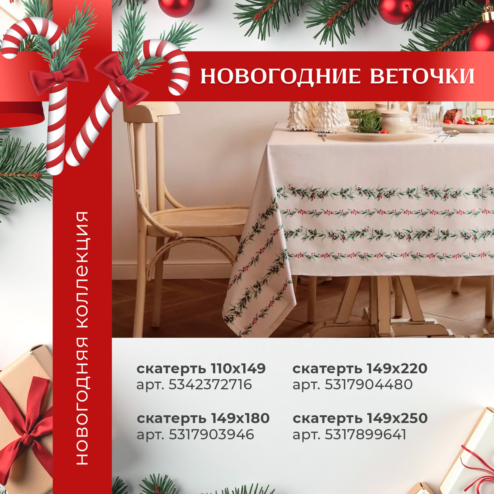 СохранитьНовый год.Скатерть новогодняя Этель "Веточки" 149х180 см, 100% хл, саржа 190 г/м2 интересное: