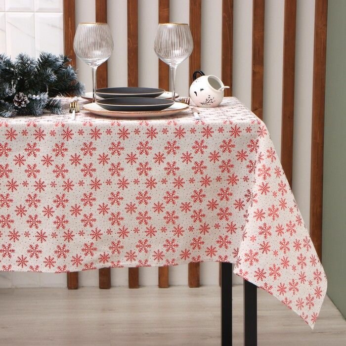 Купить Новый год.Скатерть новогодняя Этель Снежинки 100*140 ±5 см, 80% п/э 20% лен, 120гр/м2