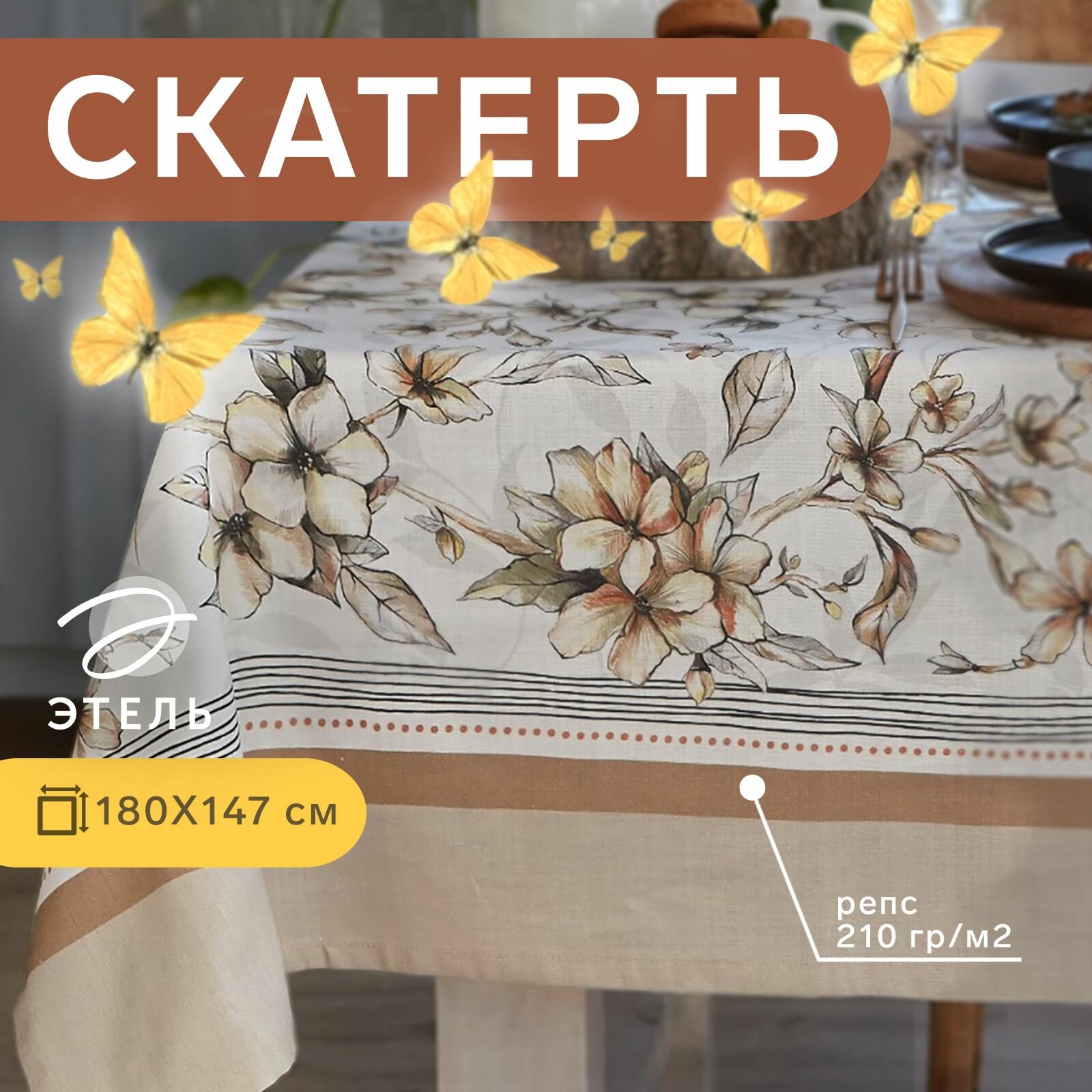 Скатерть Этель Сamellia 149х250 см, 100% хлопок, саржа 190 г/м2 (28854)