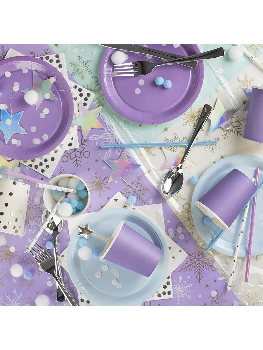 Скатерть одноразовая, Звезды, Белый/Серебро, 137*274 см, 1 шт.
