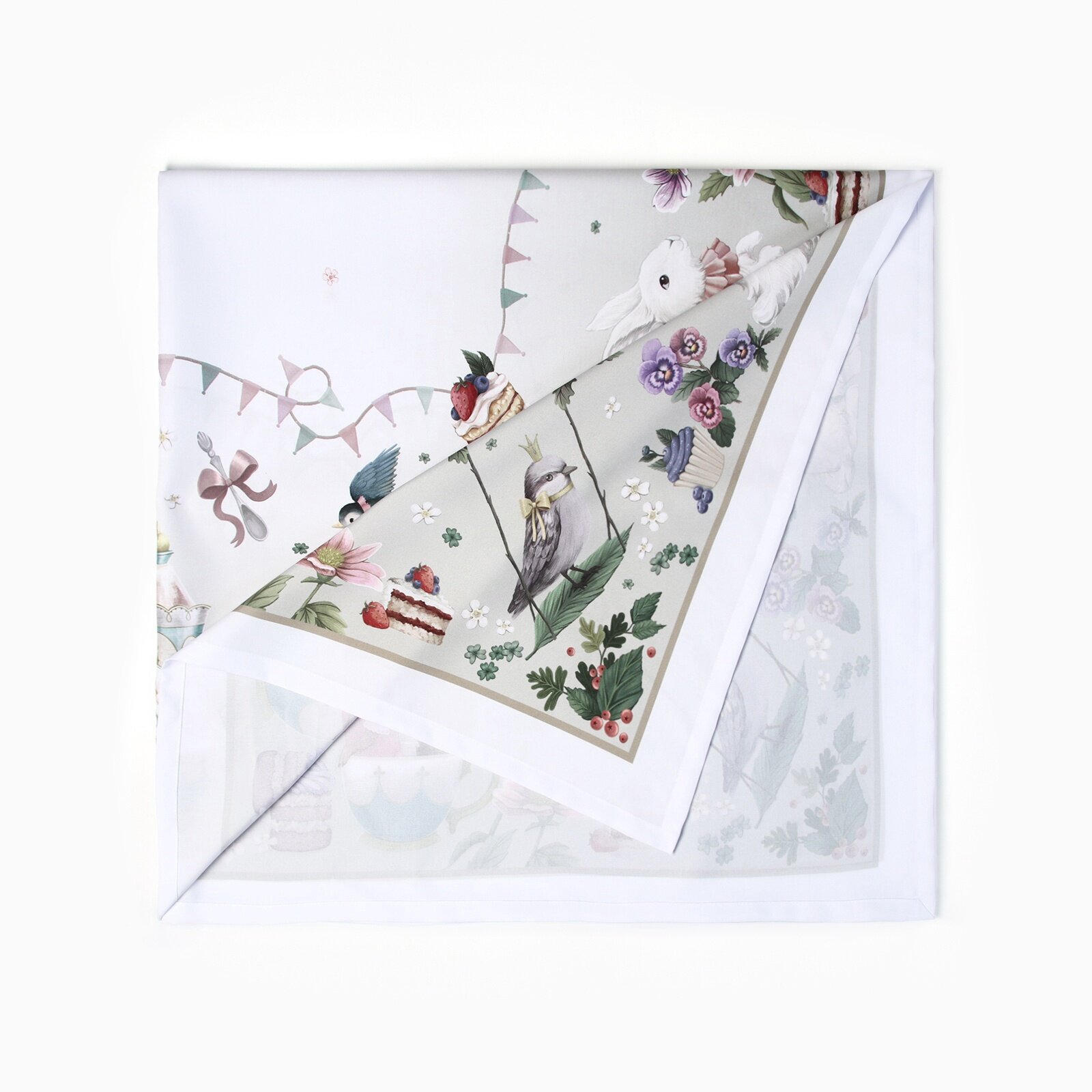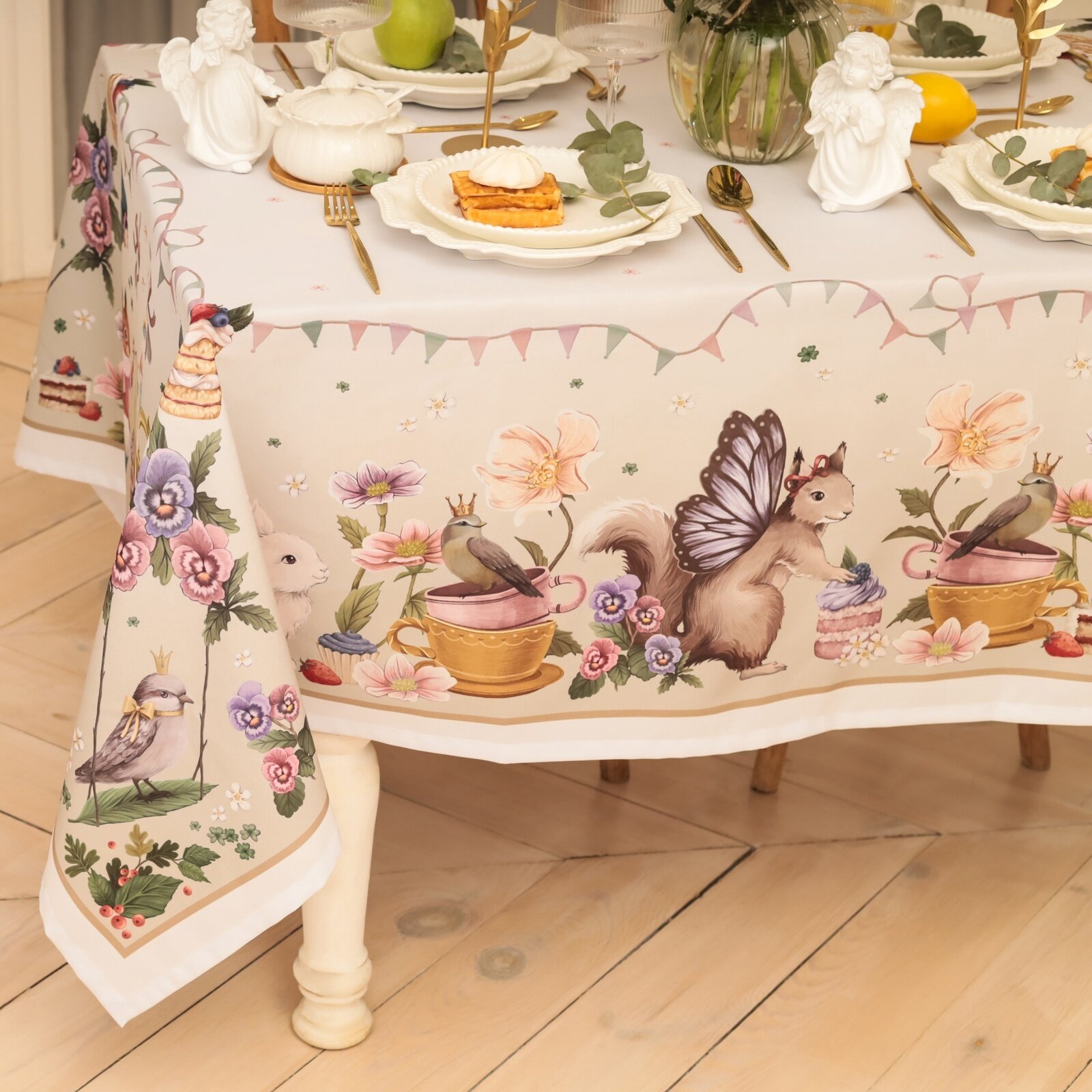 Скатерть пасхальная Доляна Fluffy bunnies, 180×144 см, 100% хлопок, 164 г/м²