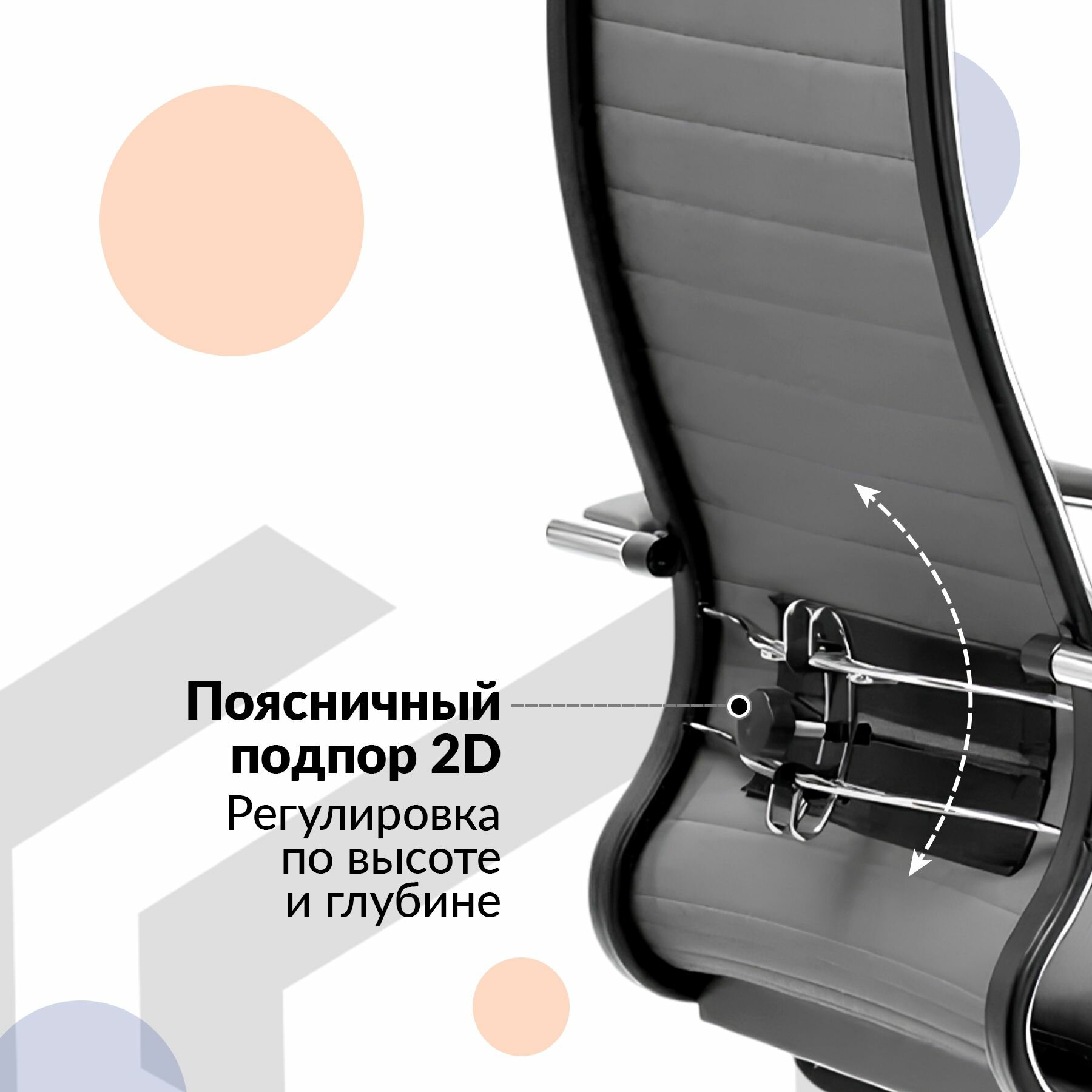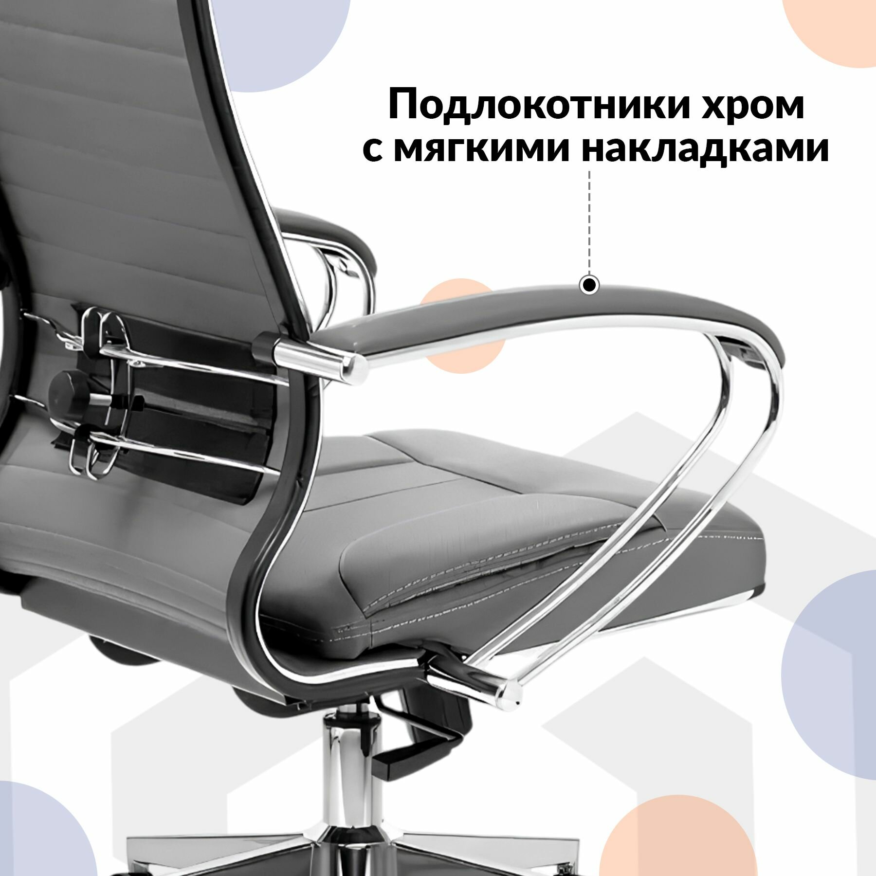 Кресло компьютерное Метта 6-2 на колесиках, с подлокотниками, высокой спинкой, подголовником, экокожа, серое / Стул ортопедический, 120 кг