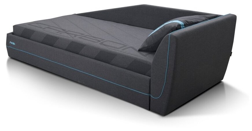 Фабрика Мирлачёва кровать CARBON-NEW, 90х190, реечное основание с подъемным механизмом, изголовье справа, кант голубой