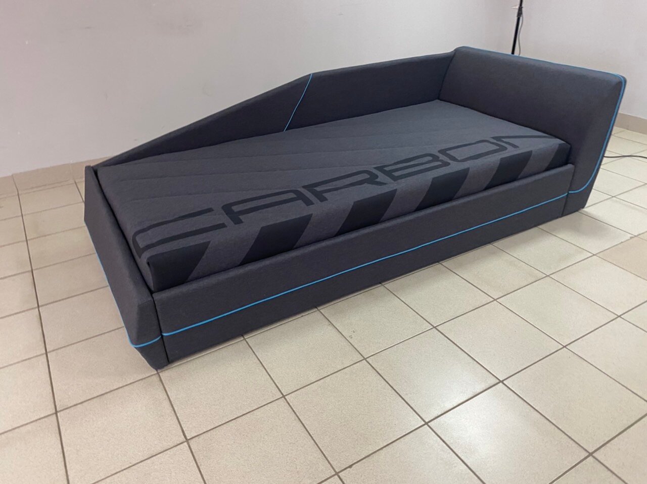 Фабрика Мирлачёва кровать для подростка CARBON-NEW, размер 90х190, реечное основание с подъемным механизмом, изголовье слева, кант голубой