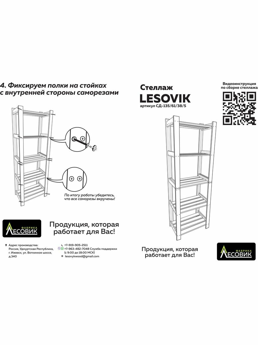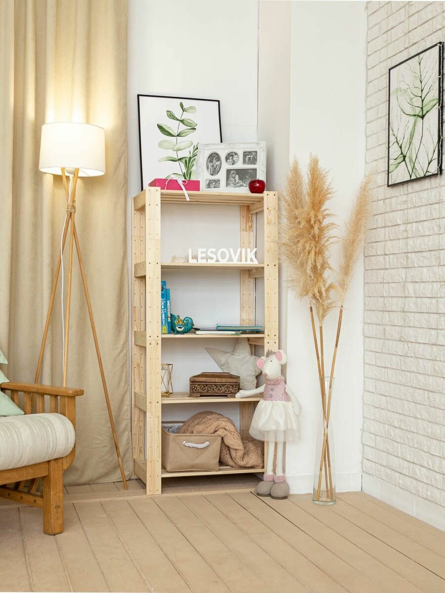 Стеллаж Lesovik, деревянный, 5 полок, высота 135см интересное: