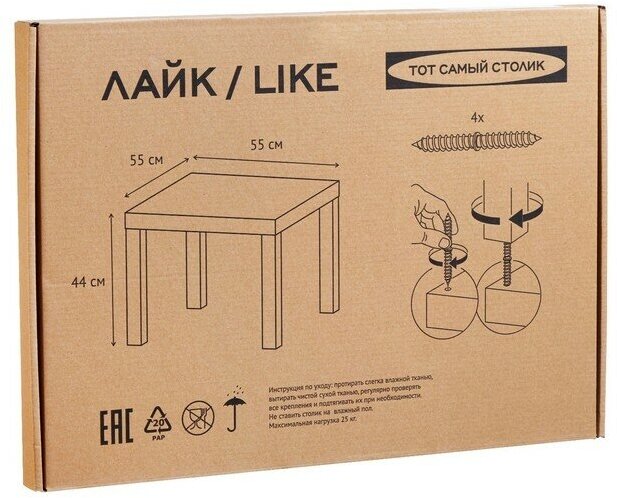 Лайк стол журнальный / придиванный 55х55 см, цвет Белый