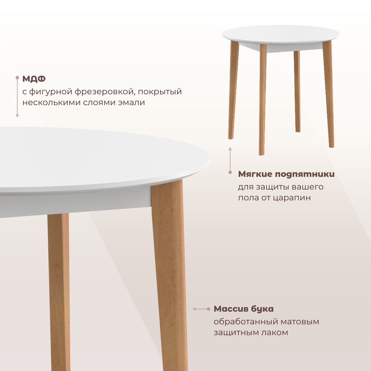 Стол кухонный круглый / стол обеденный круглый SKYLAND LYKKE TR-100, белый/бук, 100х100х75 см