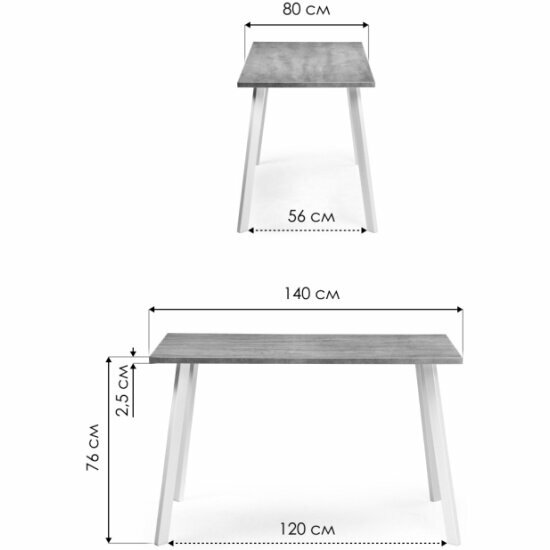 Стол Лайфмебель Тринити Лофт 120 25 мм бетон / белый матовый