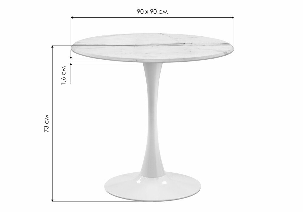 Стол Woodville Тулип 90х73 мрамор белый/белый Размеры: Высота 730мм Глубина 900мм Ширина 900мм