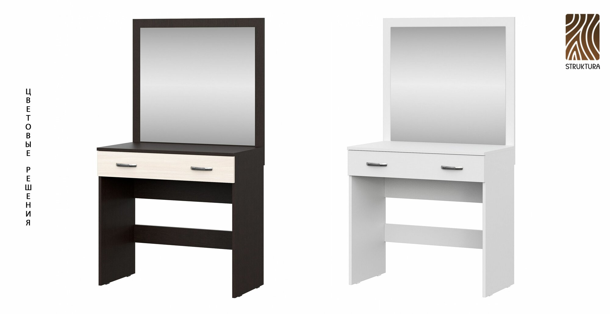 Стол туалетный Ронда СТ-01, Белое Дерево, ЛДСП, с ящиком, зеркалом, 1445х436х800, интерьер-центр