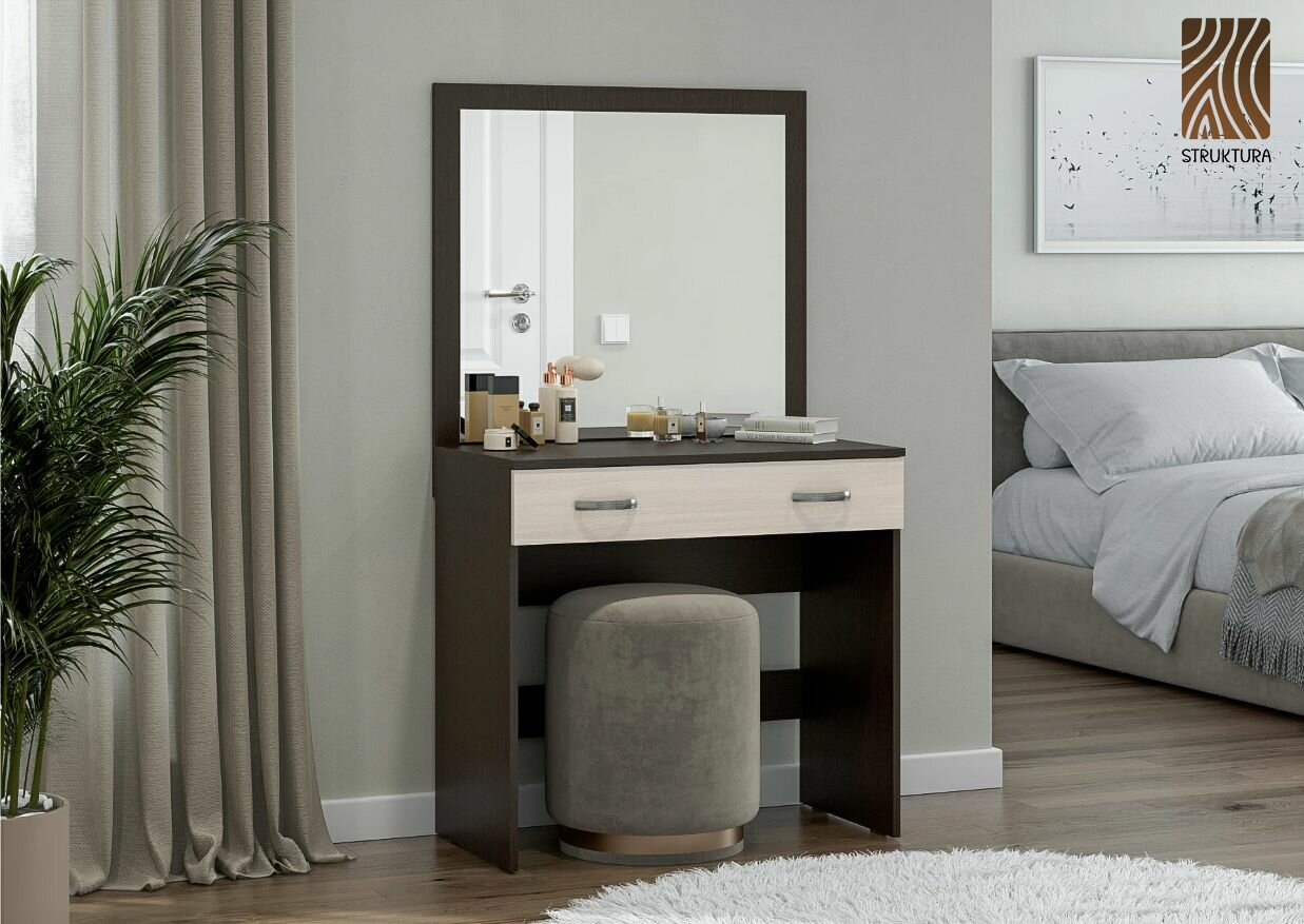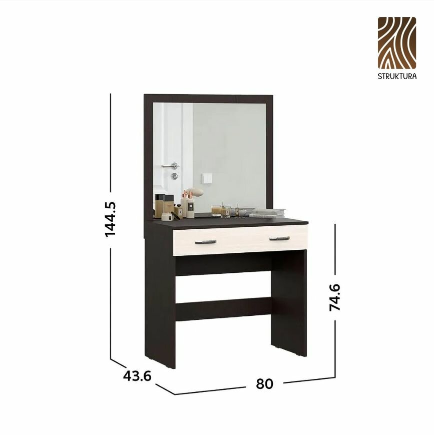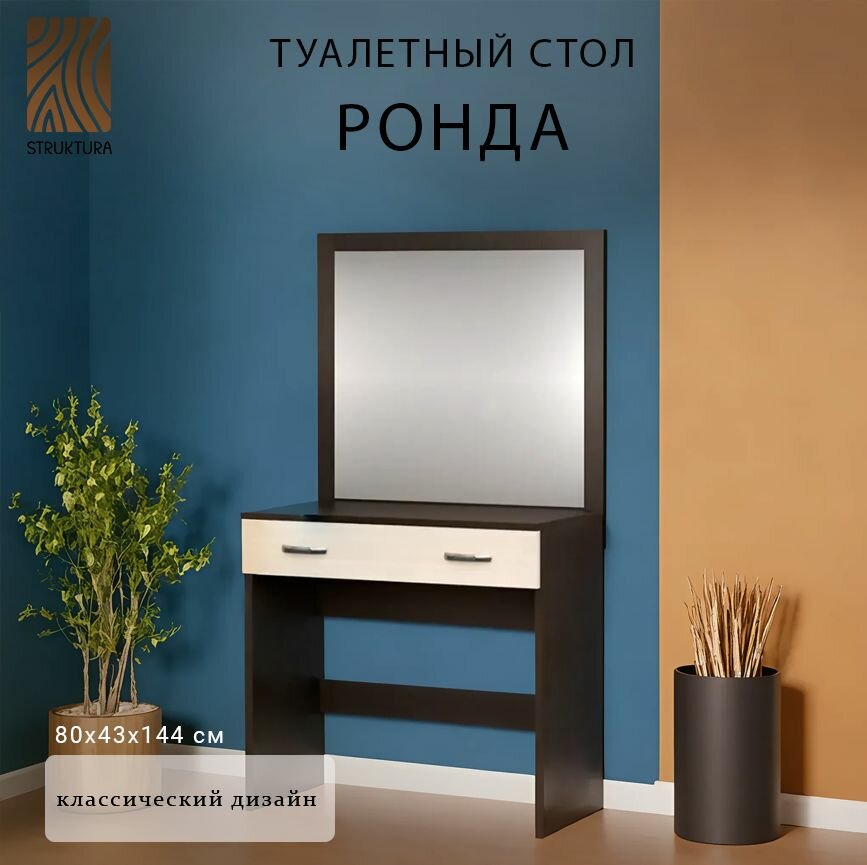 Стол туалетный Ронда СТ-01, Венге/Дуб Белфорд, ЛДСП, с ящиком, зеркалом, 1445х436х800, интерьер-центр