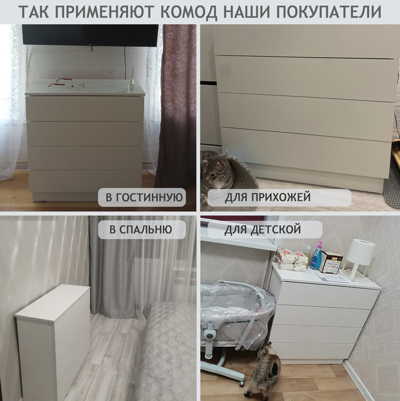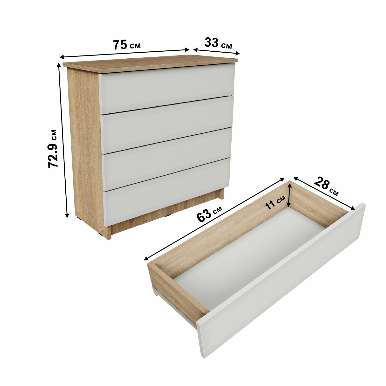 Комод LETTA "Ультра Крафт", белый, деревянный, 4 ящика, ЛДСП, 75х33х72.9 см