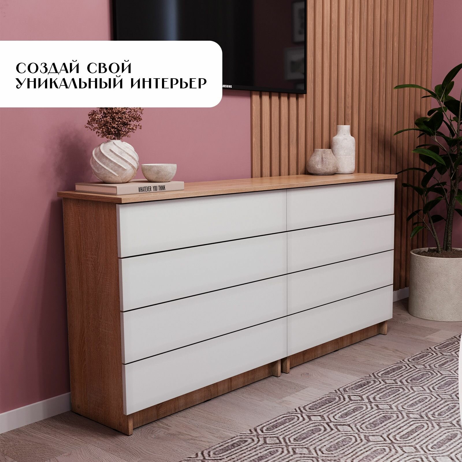 СохранитьКомод Ультра с ящиками Дуб сонома/ Белое тиснение интересное: