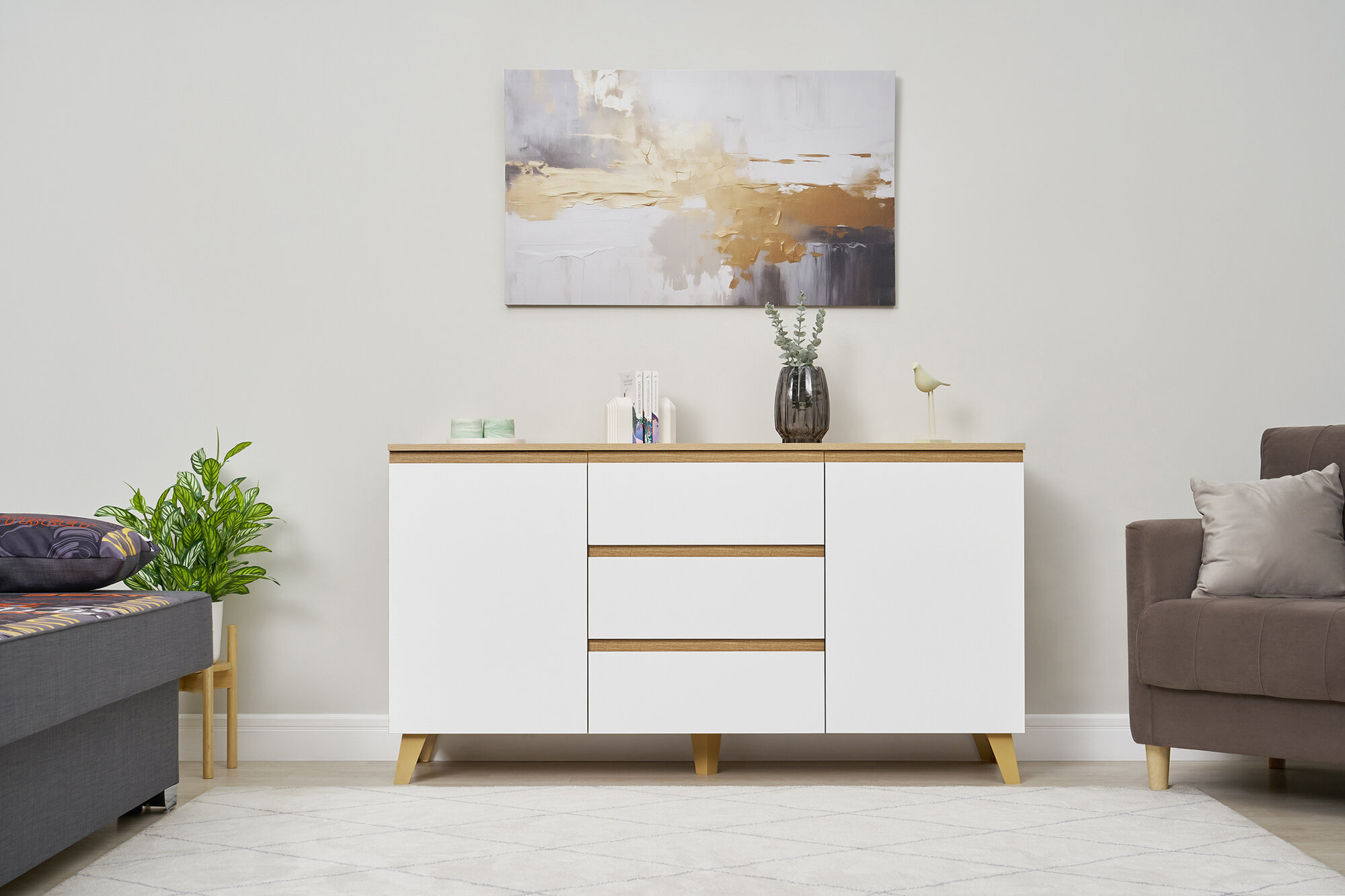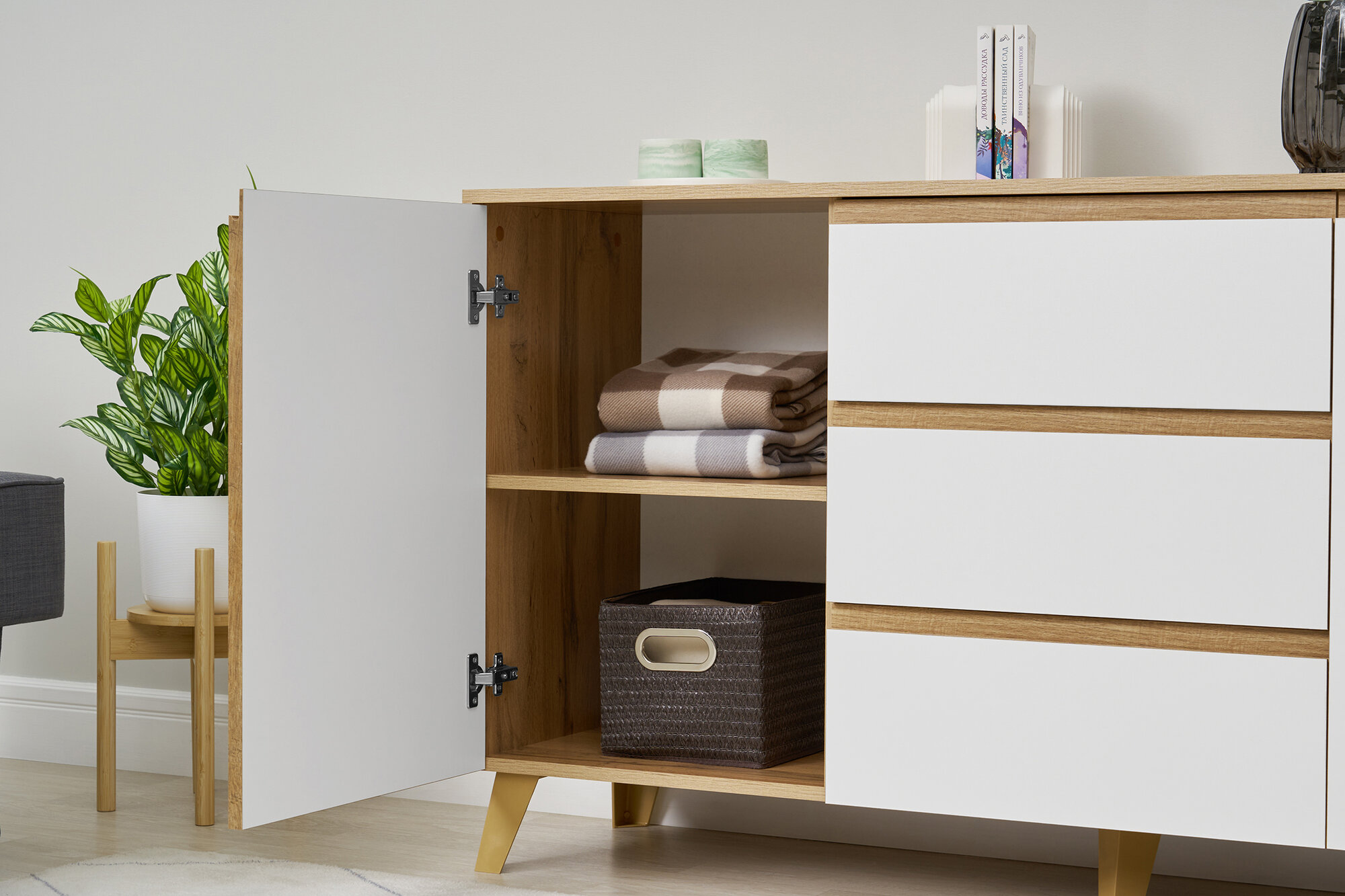 Купить Комод для одежды в спальню Нонтон Авалон, дуб вотан / белый, 150x41.4x80.4 см