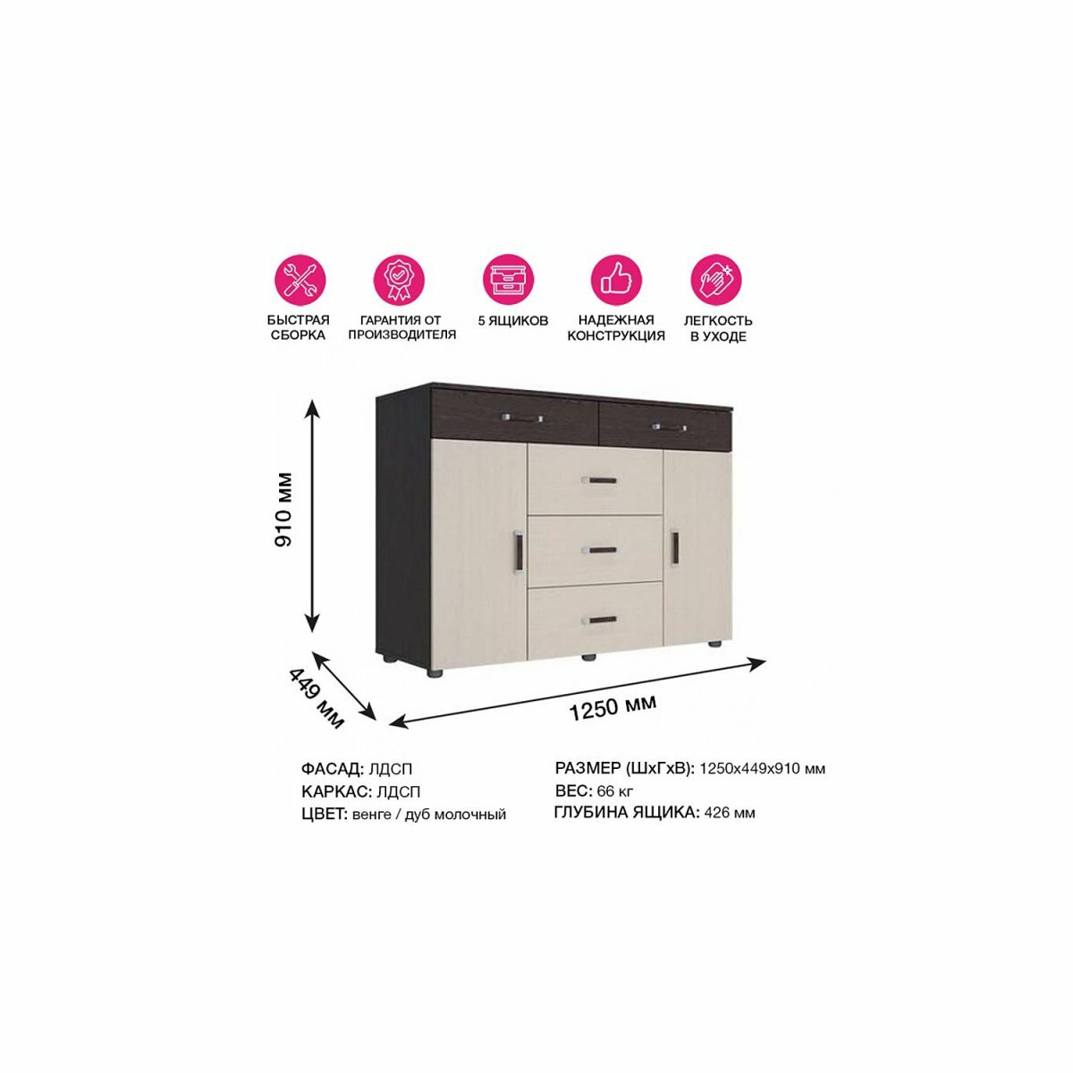 Комод с ящиками и дверцами Вега К-03 - Венге / Дуб молочный интересное: