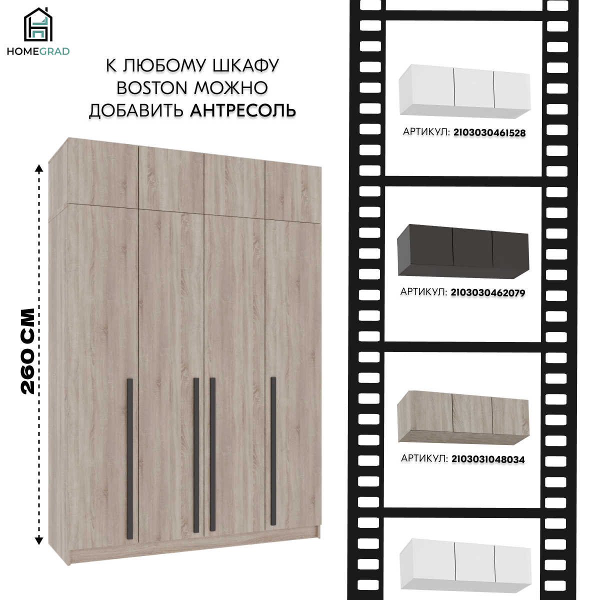 Шкаф для одежды HomeGrad Boston, сонома, 220х160х52. интересное: