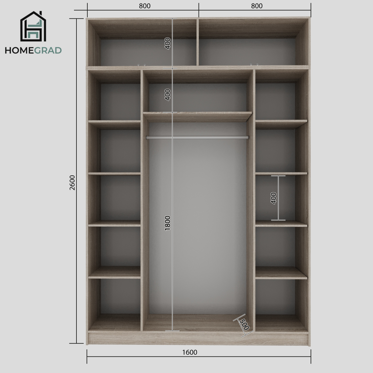 Шкаф для одежды HomeGrad Boston, сонома, 220х160х52.