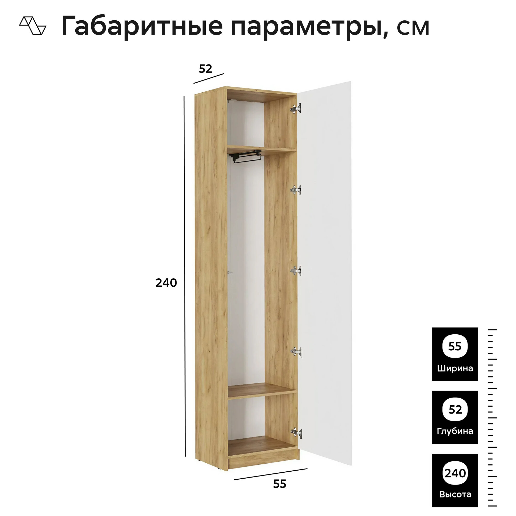 Шкаф-пенал для одежды Нонтон Роджина, дуб крафт / белый глянец 55 см