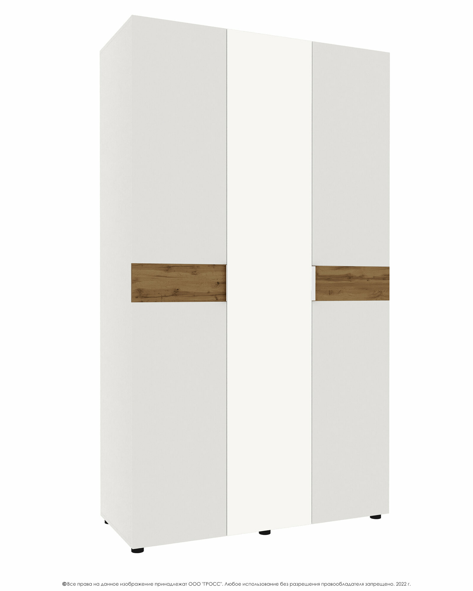 Купить Шкаф распашной трехдверный Риальто SK1200 Белый/Дуб вотан, ЛДСП, с полками, ящиками, штангами, зеркалом, для спальни, гостиной 1200х2080х490 грос