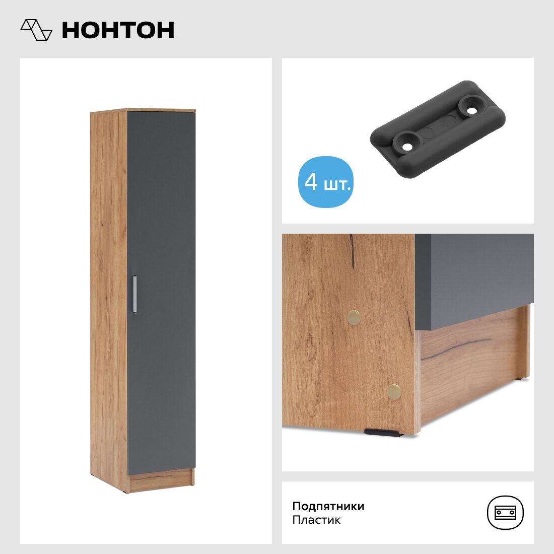 Шкаф-пенал для одежды Нонтон Мартина, графит / дуб крафт 40 см