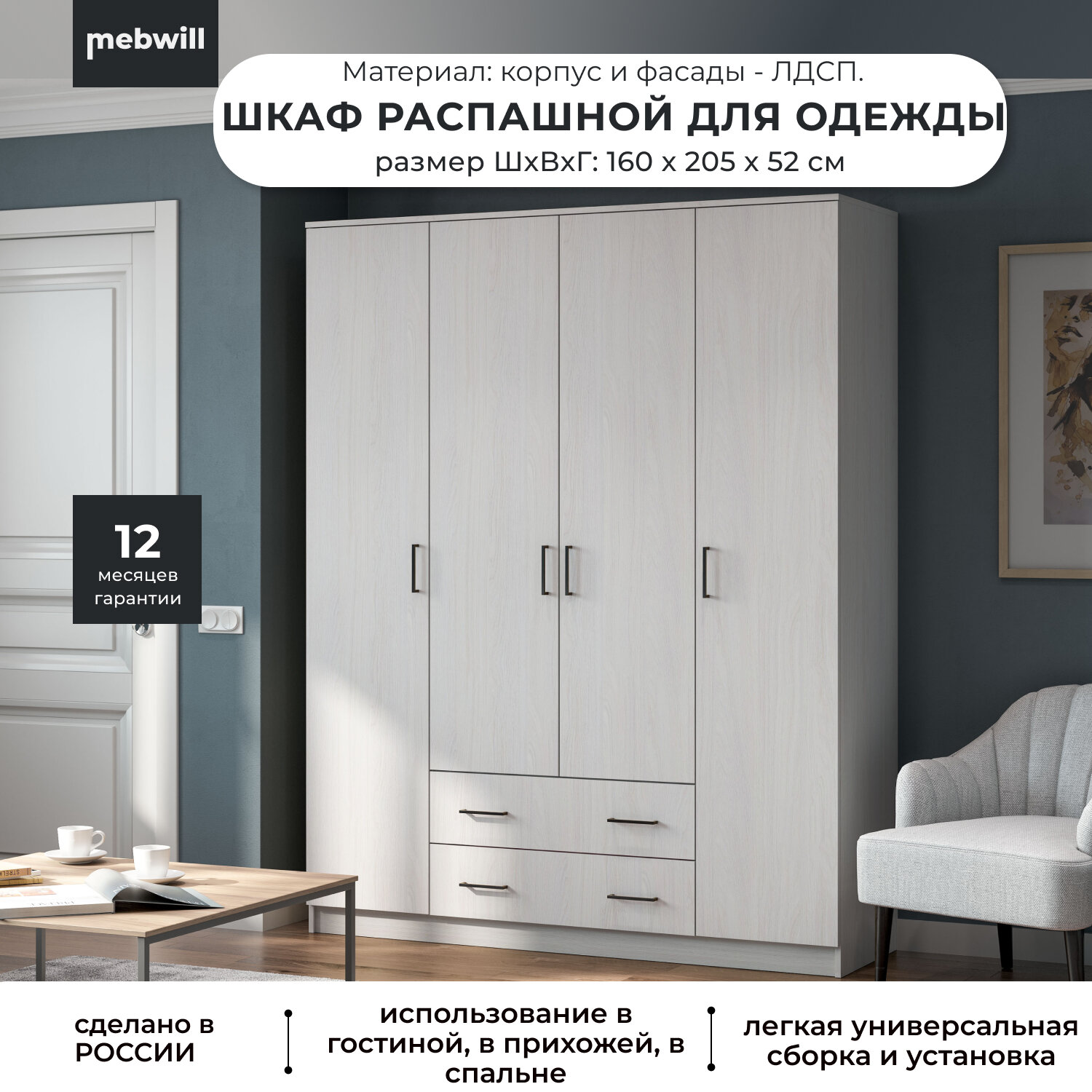 | Назначение | для гостиной / для детской / для книг / для кухни / для одежды / для прихожей / для спальни |
