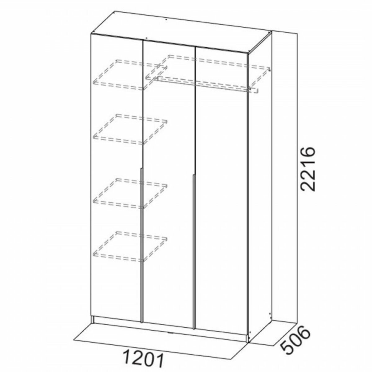 Шкаф для одежды распашной Нонтон Луас, 120 см, 7 полок и штанга, белый глянец