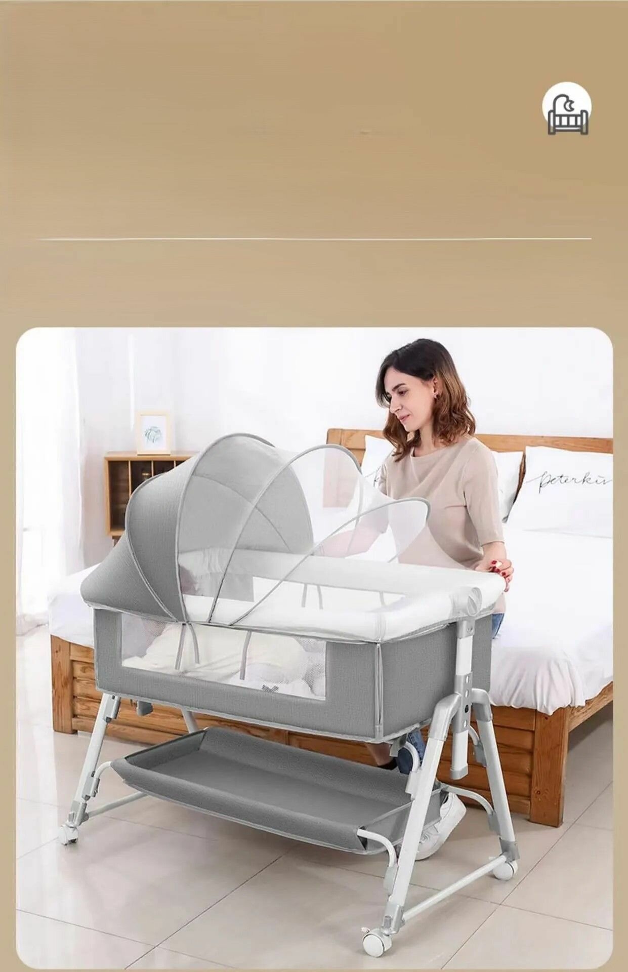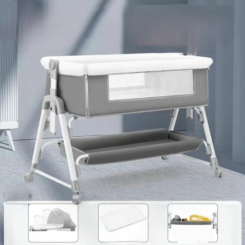 Кроватка-колыбель BAOBAO, приставная, серая, с москитной сеткой, с матрасом