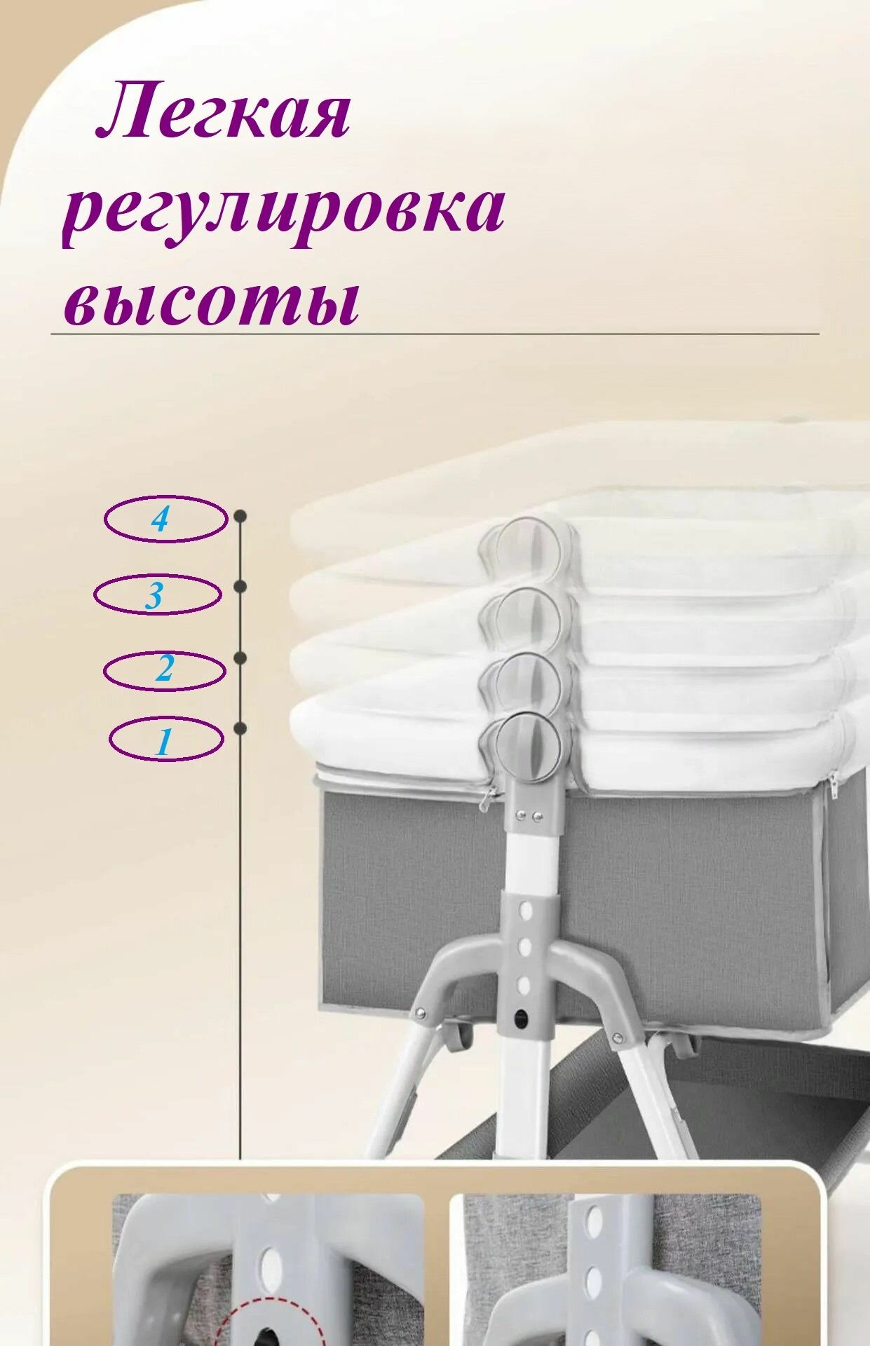 Колыбель-кроватка BAOBAO, приставная, серая, с матрасом интересное: