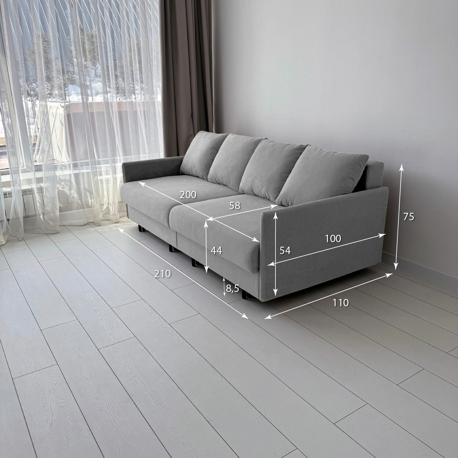 Диван-кровать Redsofa Модена 210см серый Ocean. Раскладной прямой диван со съемными чехлами Редсофа, для дома и офиса