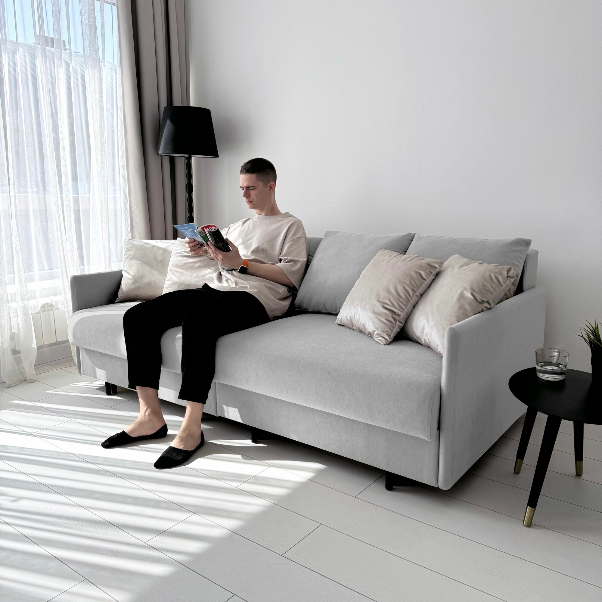 Диван-кровать Redsofa Модена 210см светло-серый Teddi. Раскладной прямой диван со съемными чехлами Редсофа, для дома и офиса