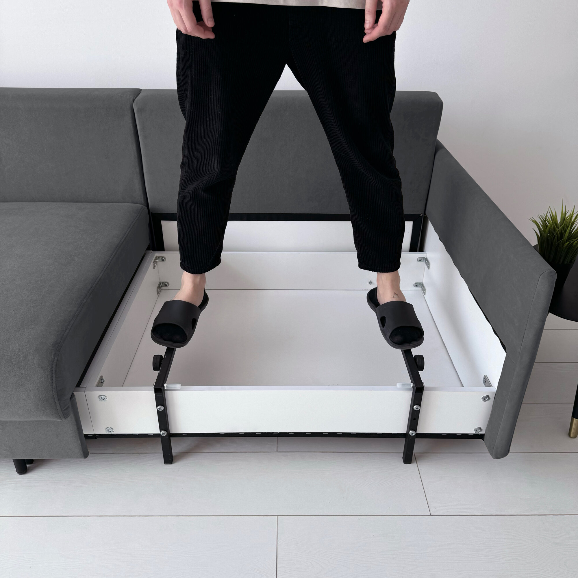| Особенности | модульный, пружинный блок, раскладная конструкция, с подлокотниками, съемный чехол, ящик для белья |
