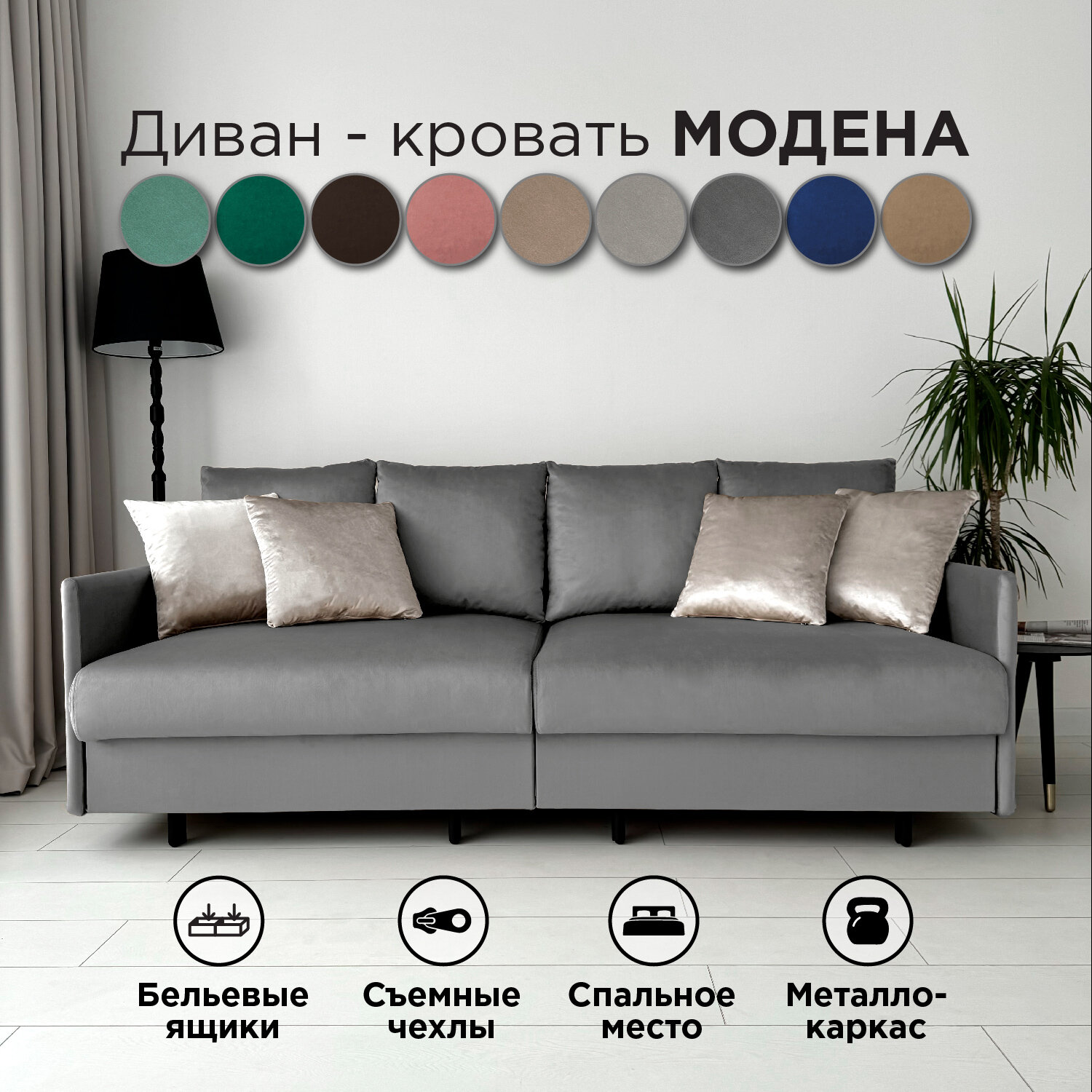 Диван-кровать Redsofa Модена 210см серый Ocean. Раскладной прямой диван со съемными чехлами Редсофа, для дома и офиса