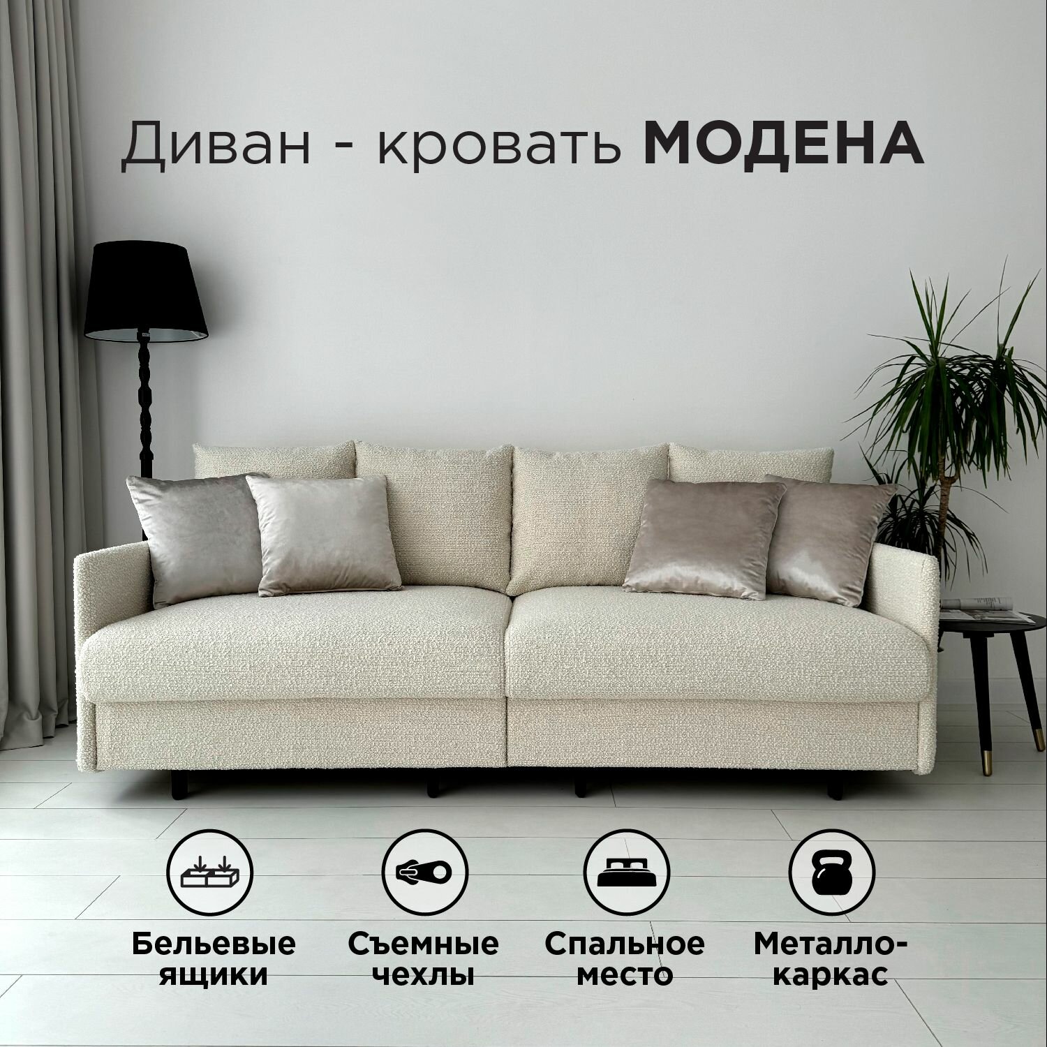 СохранитьДиван-кровать Redsofa Модена 210см белый Букле. Раскладной прямой диван со съемными чехлами Редсофа, для дома и офиса (Мебельный гарнитур бытового назначения) интересное: